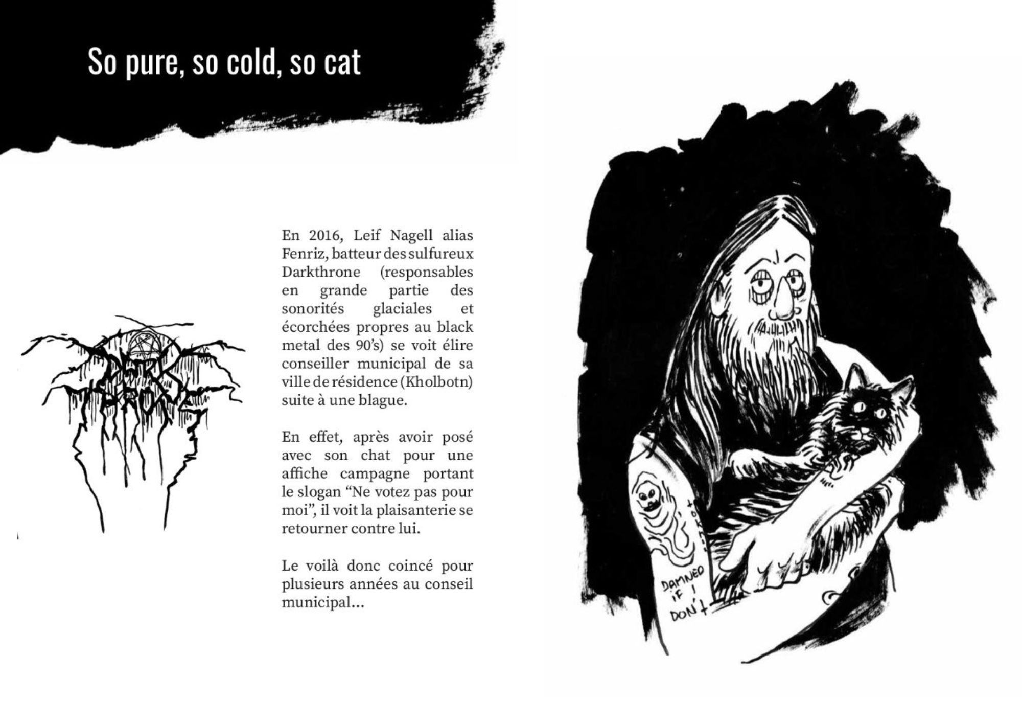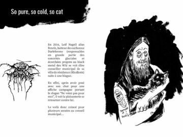 Blouson Noir is us, Sofie VON KELEN, rock & comics journalist and comics author Johann GUYOT. For 8 years we have been creating and publishing Welcome to Hell(fest) – the documentary comics (3 issues and a complete edition).