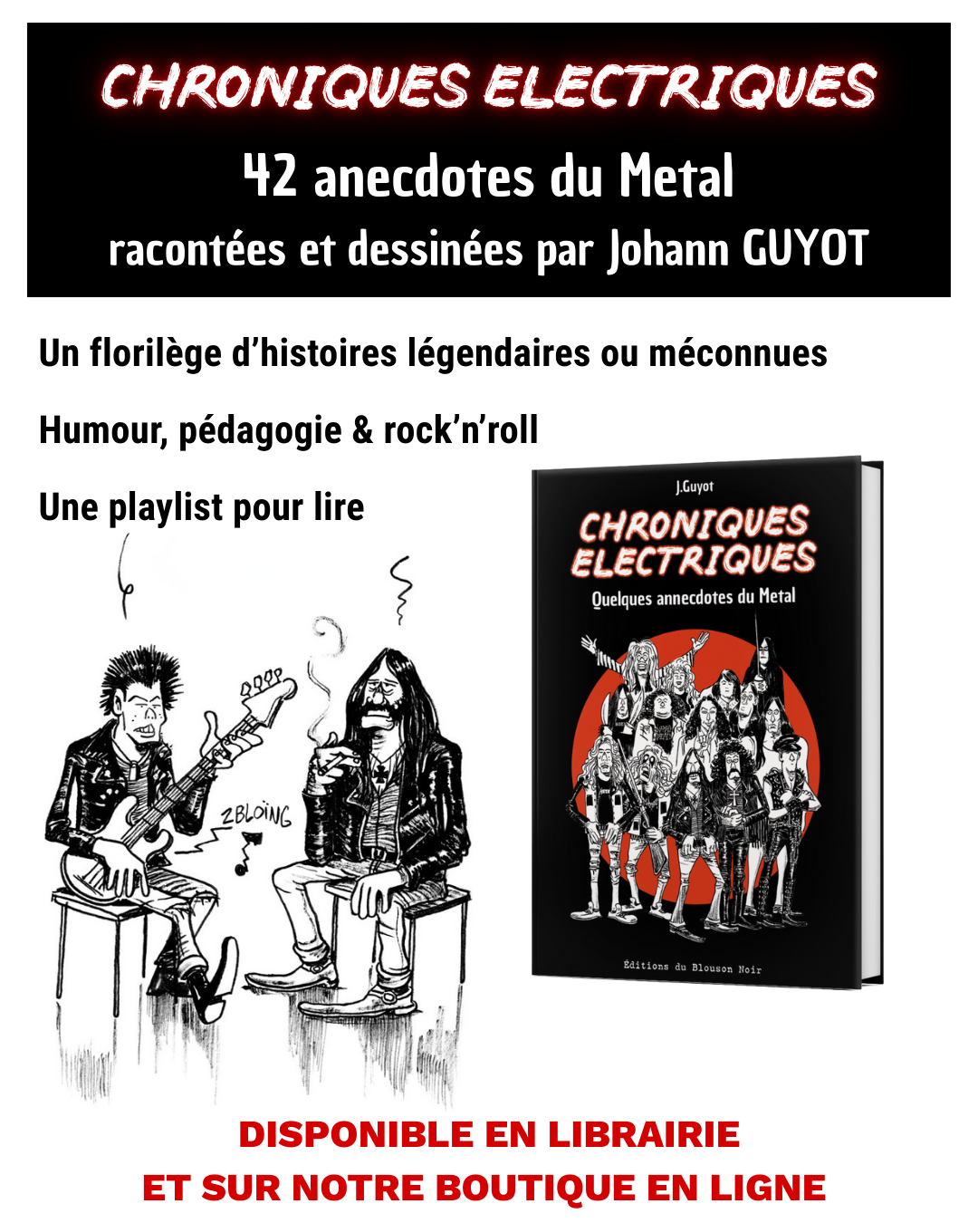 Plusieurs nouveaux ouvrages sont à paraître aux éditions du Blouson Noir: « VIBRATIONS – Jazz et Metal, regards croisés » une BD documentaire croisant les perspectives de J. GUYOT et A . LEGALLOCH sur le jazz et le metal, un recueil d’annecdotes de J. GUYOT autour du metal, un art book de J. GUYOT réinterprétant les pochettes de metal mythiques version kids art et une série de reportages dessinés retraçant le patrimoine rock des grandes villes de France.